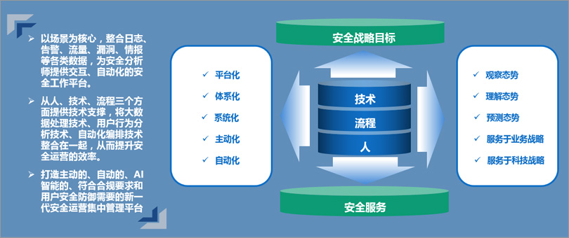 在充分理解国家网络空间安全政策以及用户对新形式下安全的诉求构建的一套从安全检查、安全集成建设、持续安全运营的闭环安全服务体系。