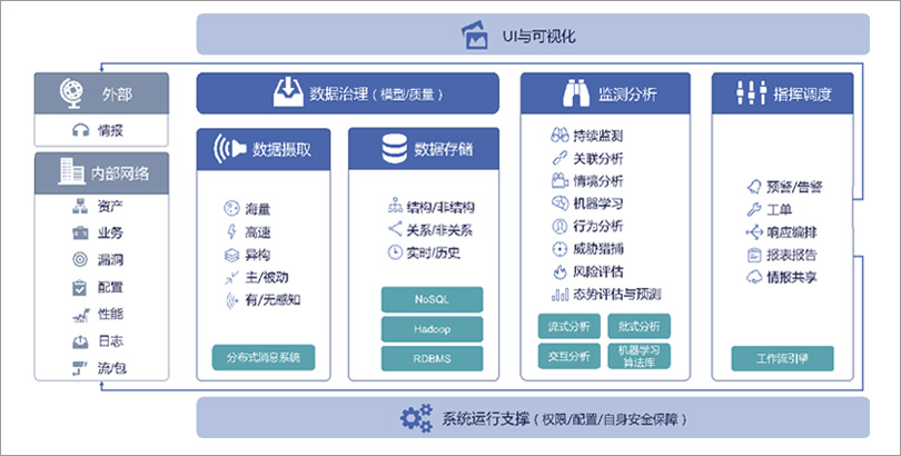 3.基于大数据分析技术实现多源安全数据深度关联,以安全管理视角感知态势变化并进行高效决策,形成安全策略或安全指令集,进而按需组织相关人员、设备、系统进行协同响应;